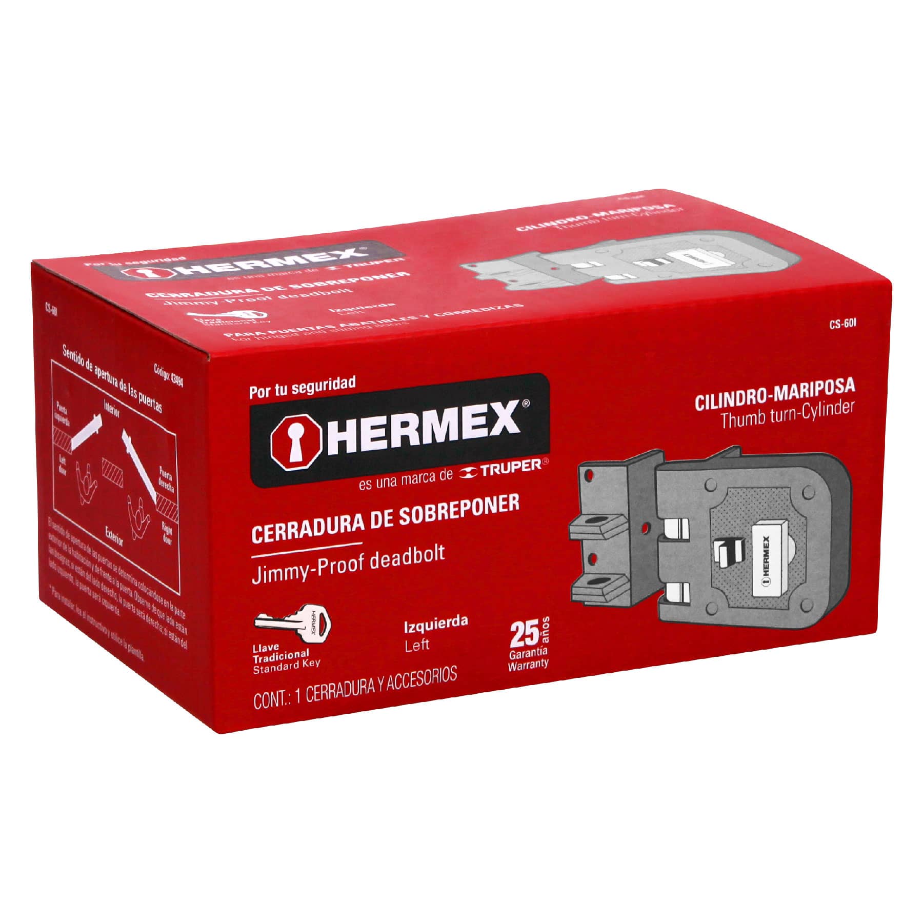 - Para colocación en puertas metálicas o de madera con espesor hasta de 2-3/8″ (60 mm).